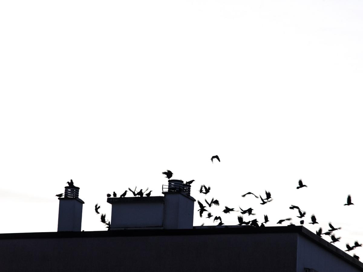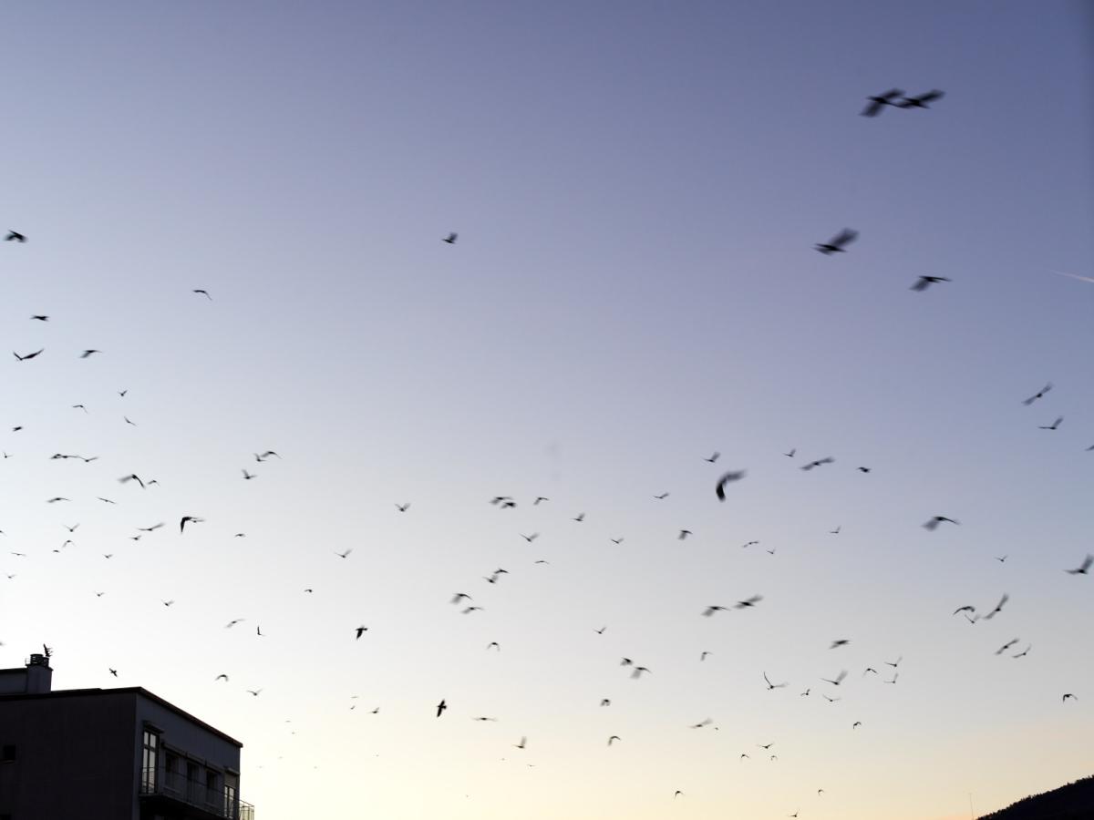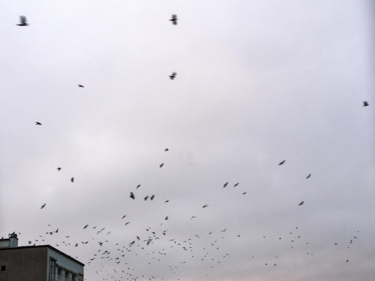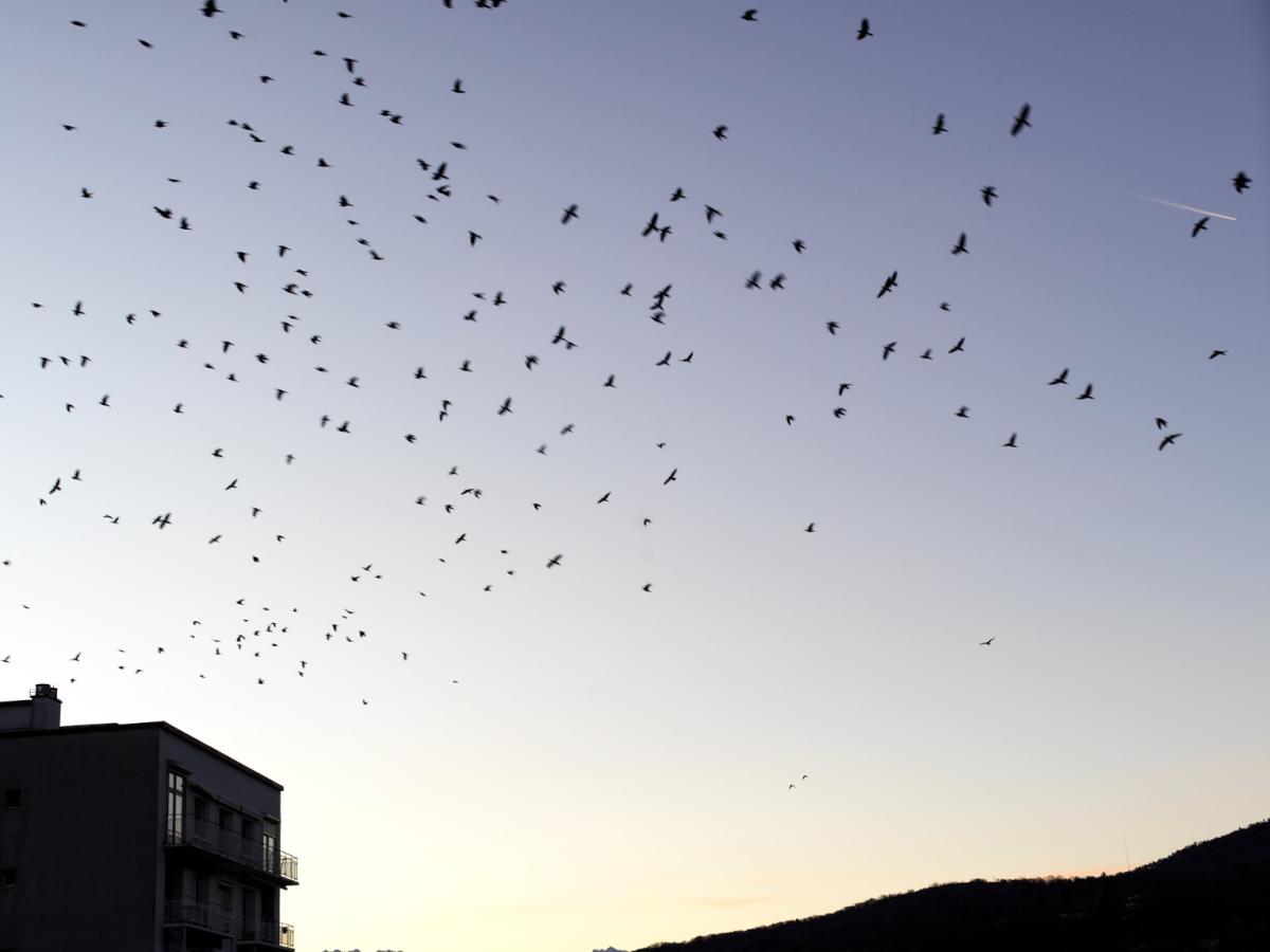 Cela faisait quelques années que je regardais leur vigoureux balai des matins d’hiver parfois renouvellé en fin de journée. Pendant une vingtaine de minutes, ils ne sont que gerbes d’envols coassantes dans une sorte de sarabande endiablée avant de se réunir sur un toit dédié d’où ils surplombent la ville puis de se disperser vers leur poste d’observation.
