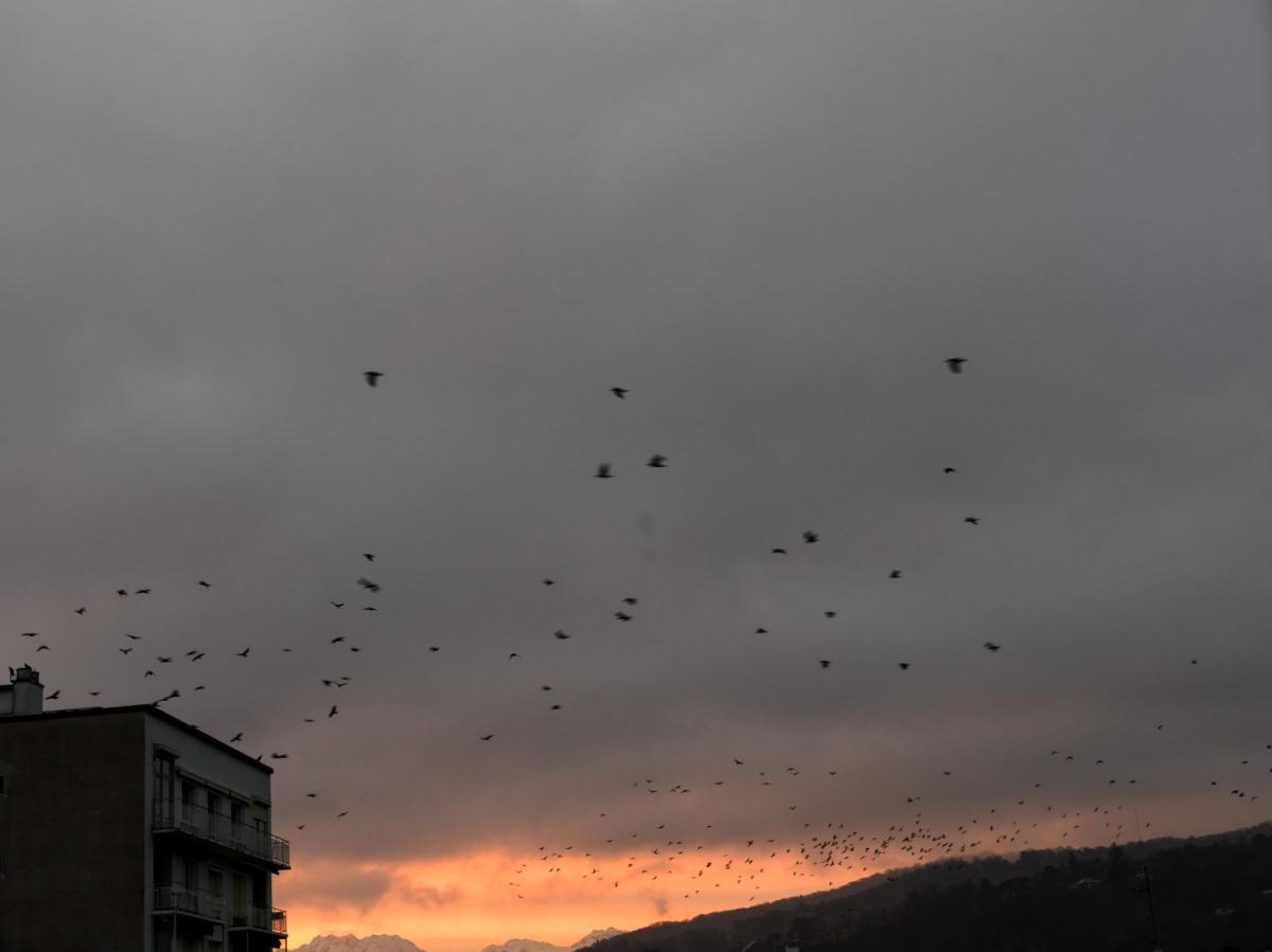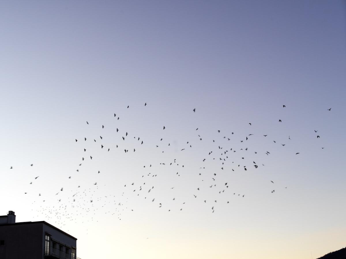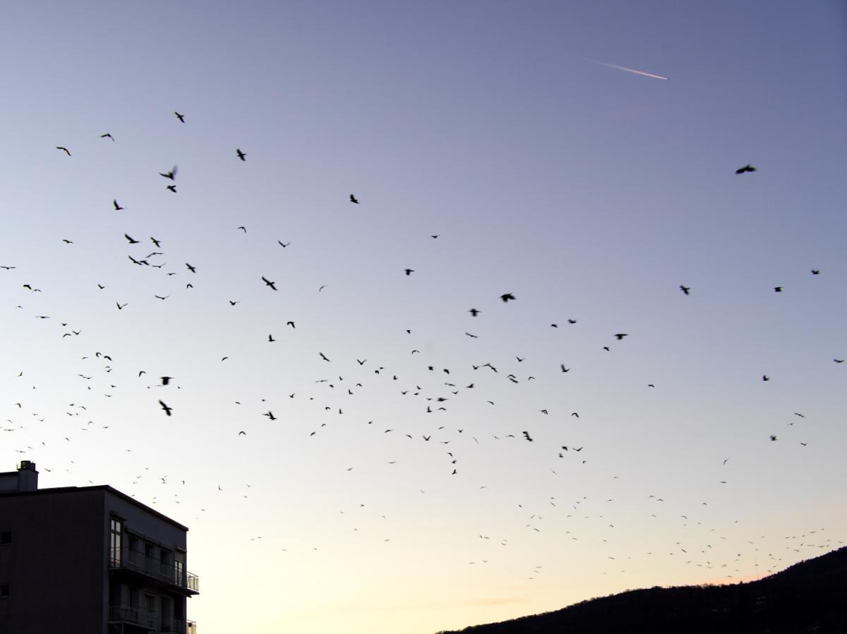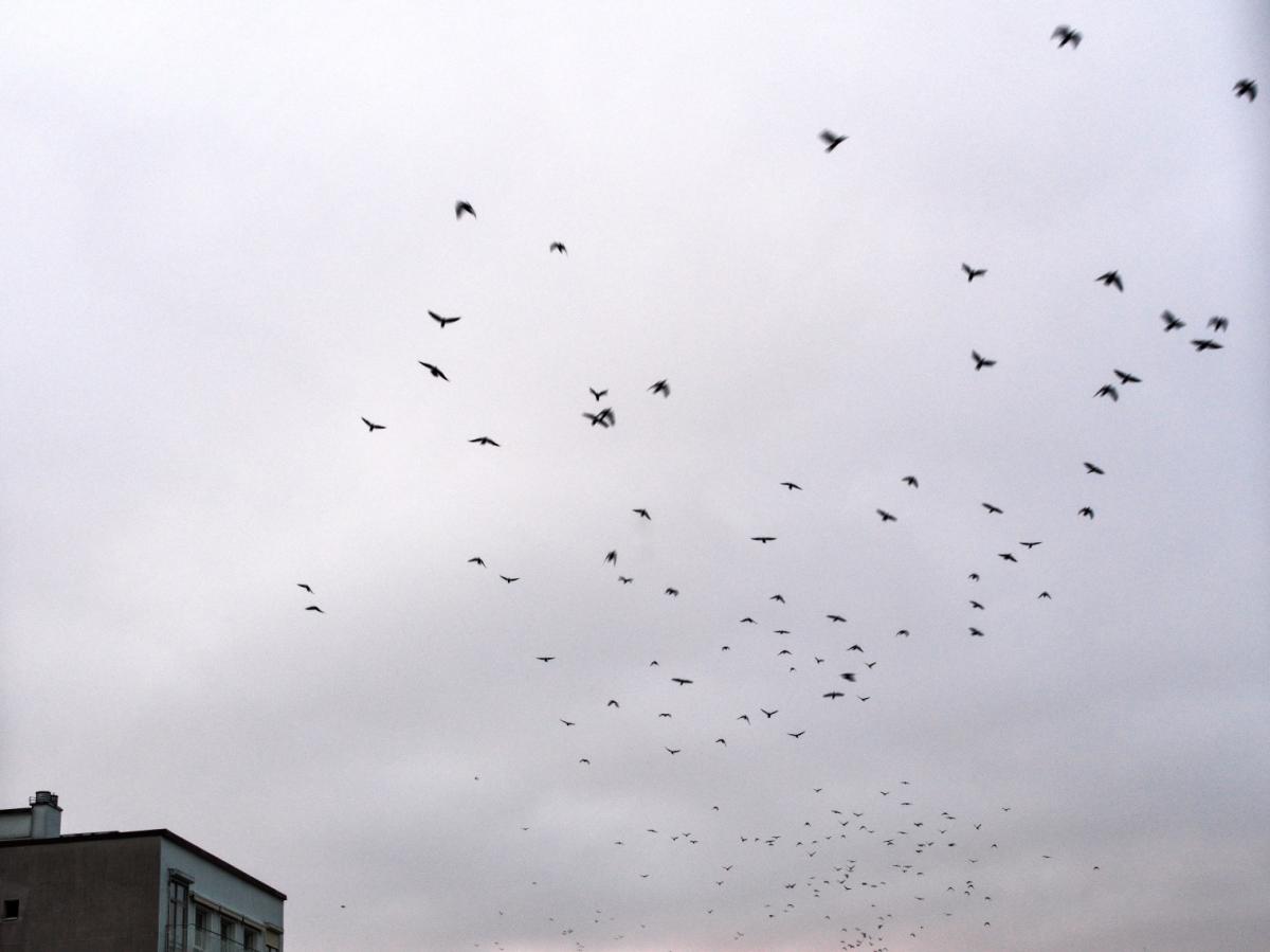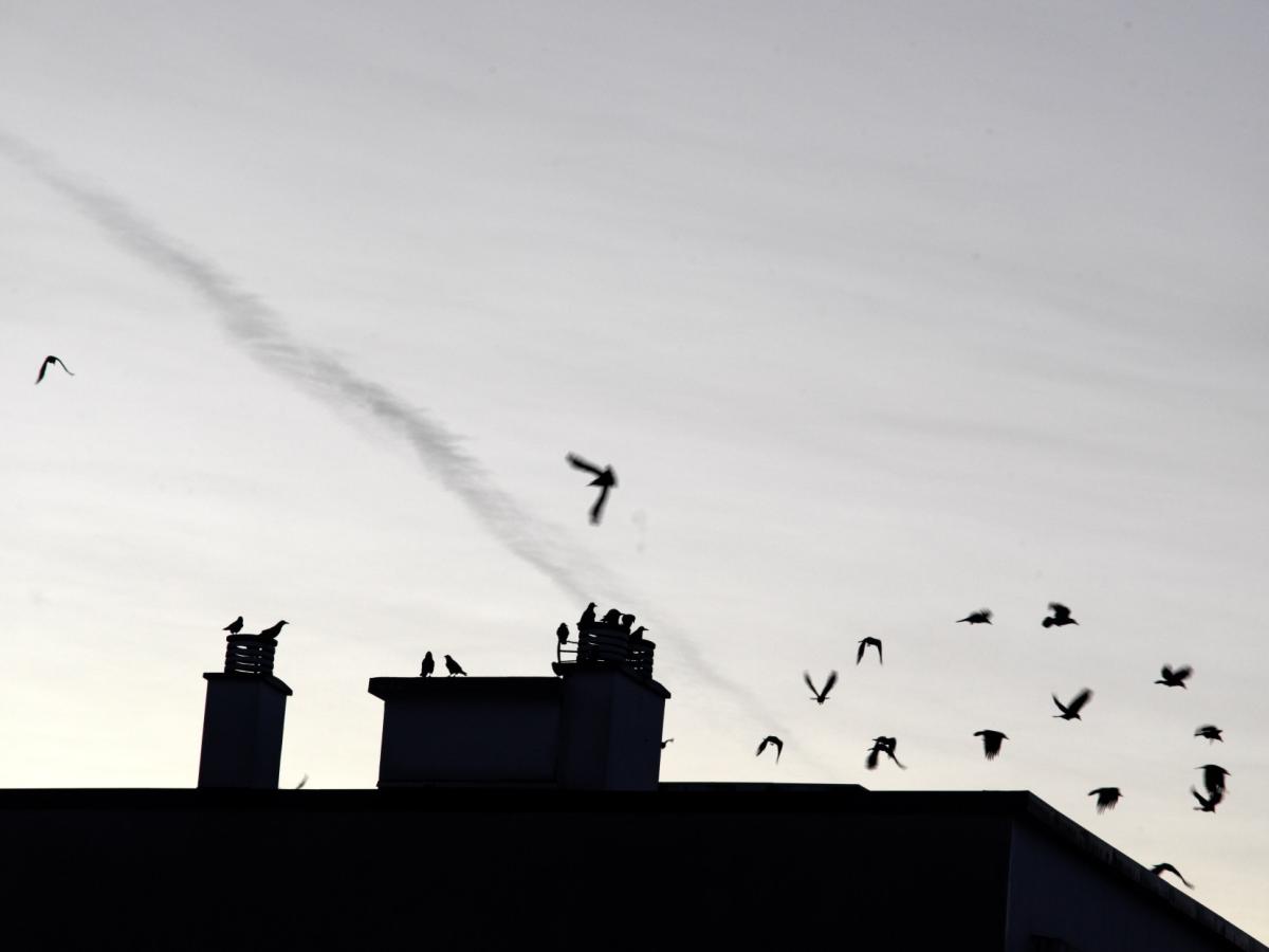 Cela faisait quelques années que je regardais leur vigoureux balai des matins d’hiver parfois renouvellé en fin de journée. Pendant une vingtaine de minutes, ils ne sont que gerbes d’envols coassantes dans une sorte de sarabande endiablée avant de se réunir sur un toit dédié d’où ils surplombent la ville puis de se disperser vers leur poste d’observation.