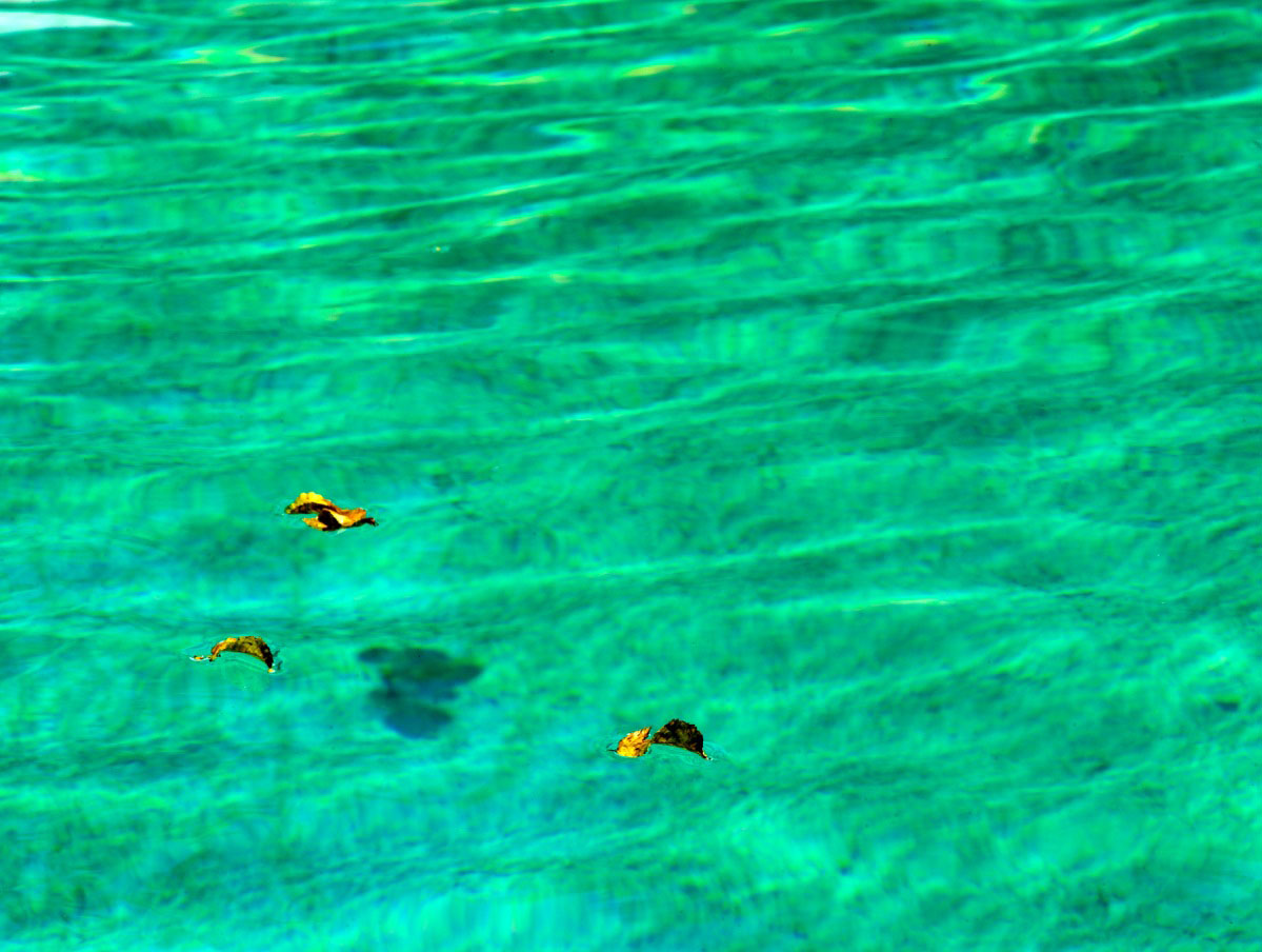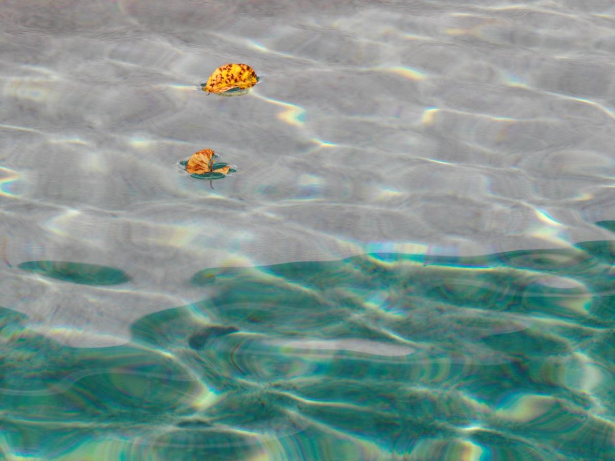 L’irisation, les couleurs changeantes de l’eau, les déformations incessantes et la mouvance des reflets, les feuilles mortes dérivant ou déambulant. Tout était instabilité et renouvellement. Mais tout était calme et paisible, faisant glisser vers un état psychique intermédiaire par définition indéfinissable où ce sont les yeux intérieurs qui regardent et guident. Je me suis dit que c’était sans doute ce qui motivait tant de personnes à investir le prix d’une habitation dans un équipement à l’utilisation annuelle si restreinte.